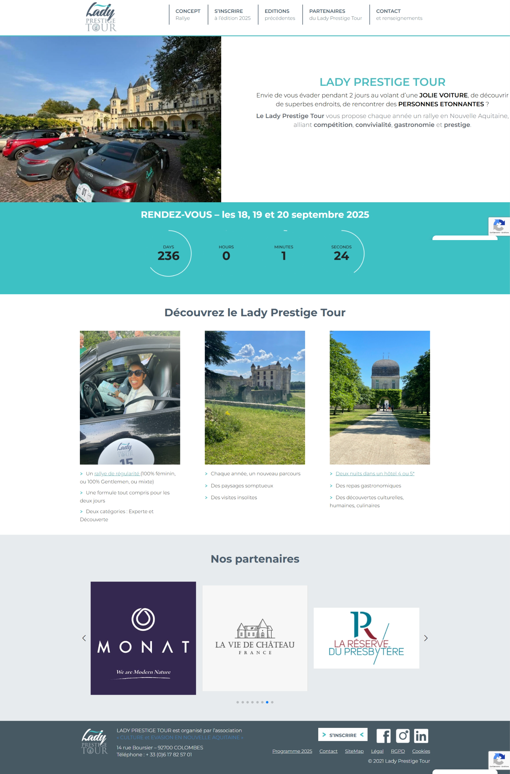 Lady Prestige Tour est une compétition automobile en Nouvelle-Aquitaine, réservée aux femmes, mais ouverte aussi aux équipes mixtes. Pendant deux jours, les participants traversent des paysages pittoresques, avec des étapes régulières et des visites de lieux d’exception. L’événement combine défis sportifs, luxe et découvertes culturelles, offrant des moments inoubliables dans un cadre prestigieux.